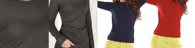 - seamed 1x1 rib collar with spandex; contrasting neck tape