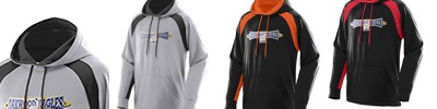 100% polyester performance wicking fleece; Wicks moisture away from the body; Contrast color self-lined hood; Drawcord in hood ; Contrast color front and sleeve inserts; Raglan sleeves; Double-needle coverstitched self-fabric cuffs; Front pouch pocket; Open bottom; Double-needle hemmed bottom;