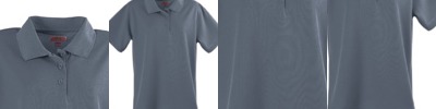100% Peruvian Pima cotton; Dura-Pearl™ buttons; Rib knit cuffs; Grey Heather is 90% cotton, 10% polyester; Three-button placket; Feminine fit;