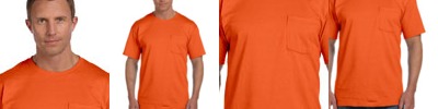 100% preshrunk ComfortSoft® cotton; Double-needle coverseamed neck; Taped shoulder-to-shoulder with five-point left-chest pocket; Tag-free neck label for ultimate comfort; Ash is 99% cotton, 1% polyester; Light Steel is 90% cotton, 10% polyester; Safety Green and Safety Orange are 60% cotton, 40% polyester;