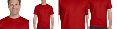 4.5 oz., 100% combed ringspun cotton jersey; Topstitched ribbed collar; Taped neck with EasyTear™ label; Double-needle hemmed sleeves and bottom; White is sewn with 100% cotton thread; Heather is 93% cotton, 7% polyester;