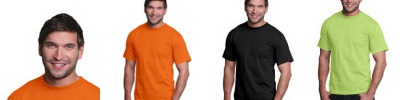 - 5.4 oz., 100% preshrunk premium open-end cotton pocket t-shirt