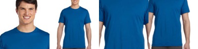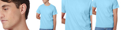 100% preshrunk cotton jersey knit t-shirt; Coverseam stitched neckline; Seamless collar with taped neck and shoulders; Double-needle stitched sleeve and bottom hem.;