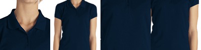 100% polyester wicking mesh; Wicks moisture away from the body; Heat sealed label; 1x1 rib-knit collar; Contrast color side inserts; Raglan sleeves; Two-button placket;
