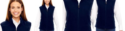 100% polyester anti-pill hollow yarn fleece, 7.7 oz./yd2/260 gsm; centre front reverse coil zipper; brushed tricot-lined lower pockets with reverse coil zippersá; tonal coverstitch detailing; stretch binding finish on armholes;