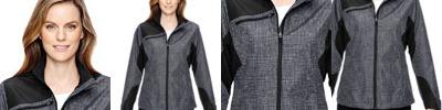 3.2 oz., 100% polyester two-tone mélange with print; water-repellent finish; inside storm placket with chin guard; back vent system for added breathability; center front, chest pocket and lower pockets ; contrast reverse coil pocket zippers with semi-autolock rubber pull tabs; adjustable cuffs with tabs; audio port access through inside left pocket ; adjustable shockcord at drop back hem;