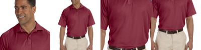 moisture wicking, antimicrobial and UV protection performance; 100% polyester snag protection tricot, 4 oz./yd2/135 gsm; 100% polyester birdseye mesh, 3.8 oz./yd2/128 gsm; Four-button placket; Matching flat knit collar; Self fabric piping at shoulder yoke seams;