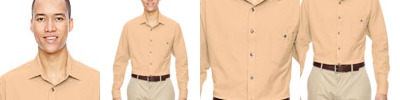 button-down collar; durable flat felled side and underarm seams; adjustable cuffs; back waist darts;